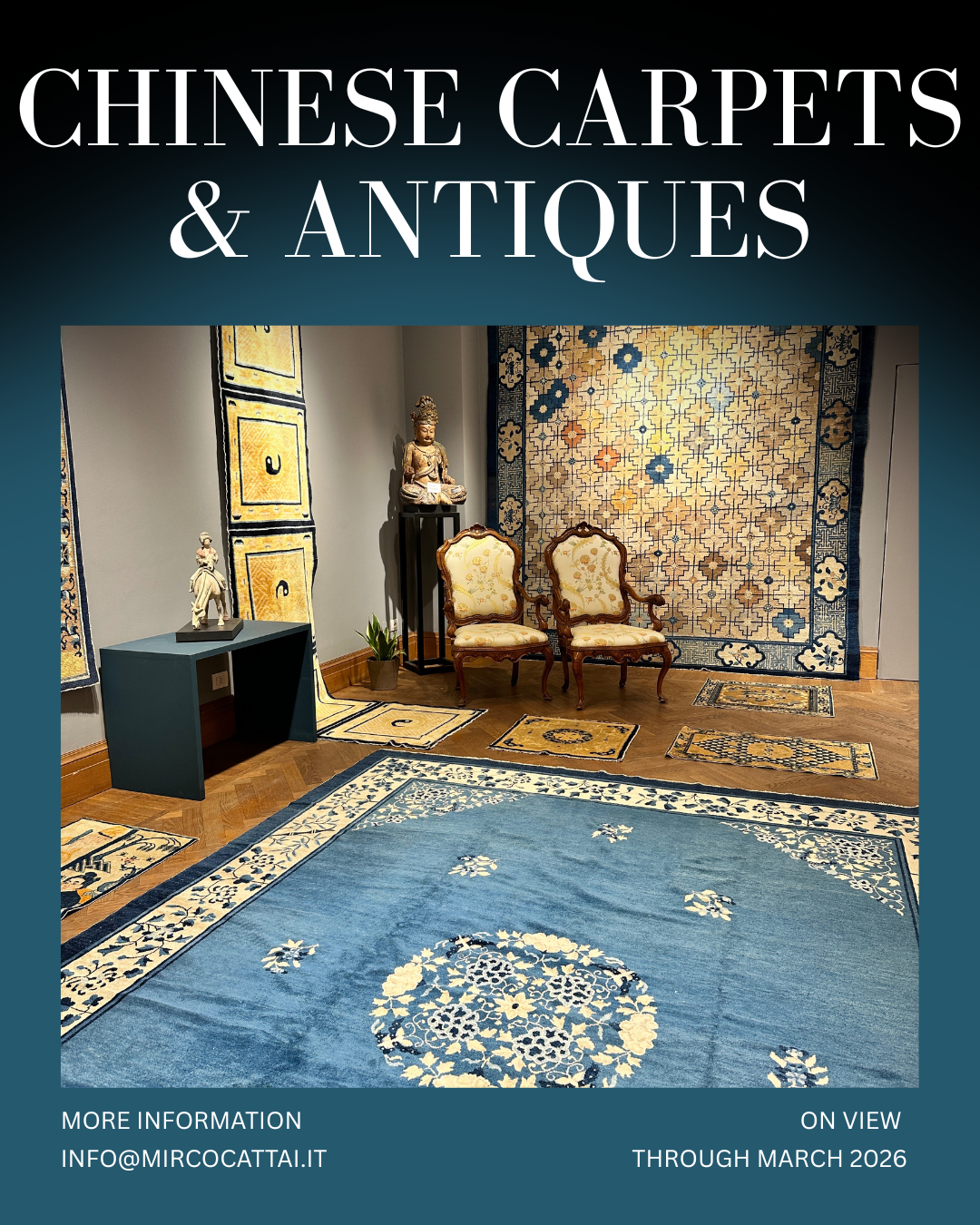 Attraverso questa selezione curata, la Galleria Mirco Cattai illustra la continuità di un’arte che non conosce tramonto. Dalla vibrante plasticità delle sculture in terracotta al sofisticato design dei tappeti imperiali, la mostra offre una prospettiva unica su una cultura che ha saputo rendere eterno il bello attraverso la materia e il nodo.